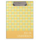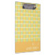 A modern checker clipboard featuring a creative checkerboard pattern in a pastel green, yellow and orange color palette, with an orange color block to personalize with your name on the front and back. You can also add a recipient’s name and gift it to someone special. A chic and trendy clipboard that feels modern, minimalist and beautiful to use and carry. Use it to hold notes or sketches while adding personality and creativity to your workspace. Thanks for viewing an Eria Daisy Art design!