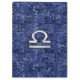 Un cromo plateado como el símbolo Libra Zodiac en un fondo de impresión de textura de diseño de estilo de camuflaje digital azul marino. Un diseño de arte urbano moderno para una gran idea de regalo de cumpleaños personalizado. Utilice el vínculo "Preguntar a este diseñador" para contactarnos con sus solicitudes de diseño especiales o para obtener ayuda con su proyecto de personalización.