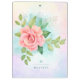 Hermoso rosa con hojas y ramas y color de agua turquesa. Tonos rosas, melocotones, verdes y turquesas. Obra de arte acuarela. Fondo de color de agua oscuro, lila, lavanda, azul claro, rosa, amarillo. Monograma y nombre personalizado.