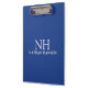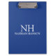 Portapapeles de negocios moderno con un diseño azul sencillo y mínimo con su monograma en negrita junto con su nombre.