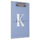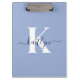 Este sencillo y elegante portapapeles azul claro de 12,5 x 9 con tu nombre en un tipo de letra de guión a la moda en azul marino tipeado sobre tu primera inicial en un tipo de letra de tapa moderna en blanco es perfecto para ti. Es de diseño y a la vez muy clásico. Será útil en tantas situaciones. Perfecto para el trabajo, el hogar, la escuela.