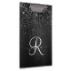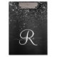 Personalice fácilmente este elegante diseño de portapapeles de moda con purpurina brillante negro bonito sobre fondo metálico cepillado negro.