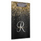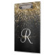 Personalice fácilmente este elegante diseño de portapapeles de moda con un purpurina brillante en oro de bonito sobre un fondo metálico negro cepillado.