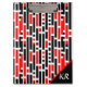 Agregue un portapapeles hecho por personalizados a los suministros de su escuela u oficina. Diseño del patrón de resumen negro rojo retro Art Deco Monogramado. Monograma con sus propias iniciales. Gran idea de regalo.