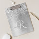 Personalice fácilmente este diseño de moda de moda en el portapapeles, con un purpurina brillante de bonito plateado sobre un fondo metálico plateado.
