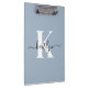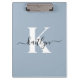 Este sencillo y elegante portapapeles azul polvoriento de 12,5 x 9 con tu nombre en un tipo de letra de guión moderno en negro y tu primera inicial en un tipo de letra de cierre moderno en blanco es perfecto para ti. Es de diseño y a la vez muy clásico. Será útil en tantas situaciones. Perfecto para el trabajo, el hogar, la escuela.