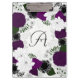 Elegante portapapeles con flores moradas y blancas. Personalice este portapapeles agregando sus propios detalles. Hay otros colores disponibles.