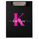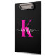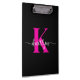 Este sencillo y elegante portapapeles negro de 12,5 x 9 con tu nombre en un tipo de letra de guión moderno en blanco y tu primera inicial en un tipo de letra de tapa moderna en rosa caliente es perfecto para ti. Es de diseño y a la vez muy clásico. Será útil en tantas situaciones. Perfecto para el trabajo, el hogar, la escuela.