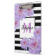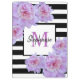Carpeta De Pinza Monograma Pink Peony Flower Black Striple Purple