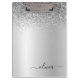 Portapapeles de planificación de monograma de metal plateado con brillo de purpurina metálica de lámina falsa cepillada. Esto hace el regalo perfecto de cumpleaños número 16, boda, despedida de soltera, aniversario, baby shower o fiesta de soltera para alguien que ama el lujo glamoroso y los estilos chic.