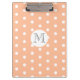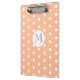 Añade un toque de encanto a tu espacio de trabajo con este portapapeles de puntas de poliaca de melocotón personalizado. Este elegante portapapeles, decorado con un suave fondo de melocotón y con puntos clásicos de polka blanca, aporta al escritorio funciones y un toque de elegancia. Un audaz monograma centrado en el medio añade un toque personalizado, haciéndolo único suyo. Tanto si eres profesor, estudiante, enfermera o profesional ocupado, este portapapeles es perfecto para estar organizado con estilo. ¡Hace un regalo reflexivo para compañeros de trabajo, amigos o cualquier persona que ame un pop de personalidad en sus necesidades básicas diarias!
