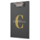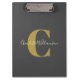 Portapapeles personalizado simple con monograma y nombre en negro y dorado