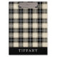 Elegante y moda, este portapapeles Monograma Thomson Camel Tartan Plaid Pattern es perfecto para el hogar, la oficina o la escuela. Presenta un patrón de flanco enchapado en blanco, negro, marrón (camello) y blanco de Thompson Camel y tipografía blanca "Tiffany" que se puede cambiar para que se ajuste al nombre de cualquier persona o a la frase/cita favorita. Un gran regalo para los profesores.