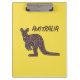 Clipbard presenta silueta de canguro en un patrón de mosaico aborigen con "Australia" en texto de estilo grunge