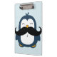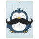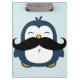 Un lindo pingüino azul chubby con un enorme bigote negro de moda.