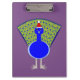 Este impresionante portapapeles presenta a un Navidad brillante y atrevido, Peacock, usando un sombrero Santa. El pájaro tiene un vientre azul brillante con una hermosa colección de plumas que se sostienen orgullosamente detrás. Las cucharadas son azules, marrones y verdes. El pavo real tiene grandes ojos negros y un bonito y pequeño pico gris.