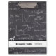 Gran portapapeles para profesores de matemáticas o estudiantes. El fondo parece una pizarra con ecuaciones matemáticas y gráficos escritos con tiza. Personalízalo con su propia información o mensaje. Ilustrado y diseñado por Patricia Álvarez.