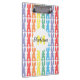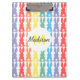 Portapapeles de Chicas de Silhouette de conejo arcoiris personalizado para niños. Conjuntos de arcoiris de color rojo, naranja, amarillo, azul, verde y violeta con colas blanquecinas sobre un fondo blanco. El fondo puede cambiarse a negro. Patrón y personalización en ambos lados. El círculo blanco tiene espacio para el primer nombre y inicial para personalizar. Los chicas adorables conejan los suministros escolares temáticos.