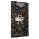 Portapapeles moderno de color marrón con monograma dorado y tipografía blanca sobre fondo de cuero falso instrumentado. Personalice con su nombre, inicial en la portada y texto en la columna vertebral.