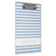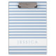 Portapapeles de patrón suave rayado azul y blanco con un nombre personalizado impreso en la parte frontal y posterior. Para encontrar diseños de fondo a rayas azules y blancas y más opciones de color, consulte la colección completa de papel a rayas de abajo y visite Dots & Stripes Pattern Design Studio de Maggie B para tener un diseño de papel más personalizado.
