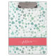 Portapapeles moderno de estampado floral de menta y coral con un nombre de guión elegante con letras a mano en una cinta de coral de moda. Personaliza con tu nombre.