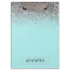 Portapapeles de planificación de nombre monograma glitter con destellos de azul acuario y plata. Este es el regalo perfecto para cumpleaños dulces 16, boda, despedida de soltera, aniversario, baby shower o fiesta de soltera para alguien que ama el lujo glamoroso y los estilos chic.