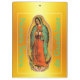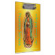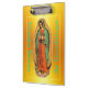 Portapapeles de Nuestra Señora de Guadalupe... Nuestra Señora de Guadalupe... En diciembre de 1531, la Virgen María apareció sobre una colina a un Juan Diego azteca pidiéndole que le construyera allí una capilla. Llevaba una prenda de vestir de color rosa con diseños de plantas para su asociación Worldly y una bata azul turquesa con estrellas de oro para su asociación celestial. Cuando el arzobispo español exigió pruebas de un milagro, proporcionó rosas españoles que el azteca Juan Diego llevó al arzobispo español con su manto o tilma... cuando los rosas se derramaron al suelo apareció la imagen de la Virgen María sobre la tilma de la capa. Esta imagen aún existe sobre el altar de la capilla construida sobre la colina en la Ciudad de México. Esta imagen es una de las más populares de las imágenes devocionales en el mundo, hoy. Siempre la muestran rodeada de una luz deslumbrante... así fue como se le apareció a Juan Diego.