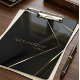 Presentamos nuestro Portapapeles de la Oficina del Abogado Elegante de Oro Negro de Lujo, un accesorio sofisticado diseñado específicamente para profesionales legales que aprecian el estilo tanto como la funcionalidad. Este portapapeles presenta un exquisito diseño abstracto con patrones de oro giratorio que destacan sobre un fondo negro profundo. Los acentos dorados no sólo le dan un toque de lujo, sino que también crean un efecto dinámico y llamativo que realza el aspecto de su espacio de trabajo. Perfecto para los abogados que necesitan organizar documentos importantes de manera elegante y profesional, este portapapeles es práctico y estético. Está diseñado para mantener las toallas legales y el papeleo de forma segura, asegurando que todo se mantenga en su lugar mientras usted está en movimiento, ya sea que vaya a la corte, asista a reuniones o simplemente trabaje desde su escritorio. Este elegante portapapeles es una herramienta esencial para cualquier abogado que valore la funcionalidad sin comprometer el estilo, lo que lo convierte en una pieza destacada en cualquier entorno de oficina.