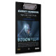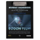 Poster de una inexistente película de ciencia ficción en la que astronautas humanos y osos de peluche se encuentran con alienígenas en una parte lejana de la galaxia. Presenta osos de peluche flotando en el espacio sobre el título de la película "Flujo Bogón". Tenemos compañía.