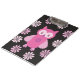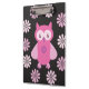 Ilustracion de búho rosa y dulce con flores rosadas claras. Idea de regalo perfecta para los amantes de las lechuzas.
