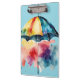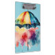 Un fondo azul pálido realza los colores del paraguas (amarillo, rojo, azul y rosa). Te animará, aunque sea un día lluvioso. Lugar perfecto para guardar notas, ideas y más.