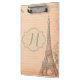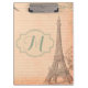 Paris Francia Eiffel Tower Shabby Chic Old Aged Paper Parchment Note Book Monograma Primer Personalizado Personalizado Tela Clip Board