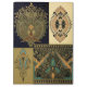 Un collage de impresiones artísticas, artísticas y novedosas de Christopher dresser. Una mezcla de arte y artesanía, estampados textiles victorianos y Art Nouveau. Audaz y elegante. En colores negros, dorados y verdes. Esta imagen es de dominio público y se deriva de wikimedia commons.