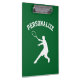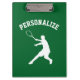 Personalice el tablero de los deportes del personalizado de los accesorios del coche de tenis. Añada su propio nombre, combine el nombre o el nombre del club. La idea del bonito regalo para el High School Coach, mamá, papá, liga de los niños, combina el logotipo de la silueta del jugador de tenis del etc. con la plantilla deportiva de la tipografía. Tablero de clip verde o de encargo del fondo del color. El doble echó a un lado impresión.