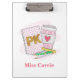 Este portapapeles de profesores de prekindergarten guarda los papeles en un solo lugar al salir del aula. El patrón tiene un cuaderno de puntos de polka rosa, café cardíaco, regla, pluma y lápiz. Este diseño de cuaderno de puntos de polka rosa se puede encontrar en otros artículos de mi tienda, PageCreativeDesigns.
