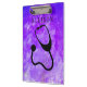El tablero de encargo de la roca púrpura médica del estetoscopio de la enfermera es una manera elegante de la diversión de guardar sus papeles importantes juntos. Este diseño fue creado por una foto personal de la roca púrpura brillante con una silueta negra del estetoscopio sobrepuesta en frente y la parte posterior del tablero. Gran idea para un regalo para las enfermeras en un cumpleaños, el día de la enfermera, la graduación, el día de fiesta o cualquier ocasión.