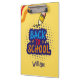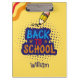 Get ready for a fantastic academic year with this vibrant and cheerful 'Back To School' Clipboard! Featuring playful doodle-style lettering, a cute pencil illustration, and a bright yellow background, it's perfect for students of all ages. Customize it with your name, grade, or a special message to make organizing notes and assignments uniquely yours. A must-have personalized accessory for the new school season!