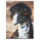 Esta imagen muestra un primer plano de un emu, un gran ave sin vuelos originario de Australia. El emu tiene un plumaje distintivo de color oscuro, un pico agudo y ojos naranjas llamativos. Sus plumas texturizadas y su expresión facial única le dan un aspecto curioso e intenso. El fondo está difuminado, destacando el pájaro como el foco central.