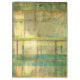 Una pintura abstracta de Jennifer Goldberger que utiliza tonos turquesa y verde dorados para crear un ambiente cálido y familiar. Un agradable paseo por el bosque durante la primavera o el verano produciría algunos de estos colores. ¡Trae el regalo de la naturaleza a tu casa comprando esta pieza!