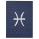 Un cromo como el Rótulo Pisces Zodiac sobre un fondo de impresión de textura de diseño de fibra de carbono azul marino. Un diseño de arte urbano moderno para una gran idea de regalo de cumpleaños personalizado. Utilice el vínculo "Preguntar a este diseñador" para contactarnos con sus solicitudes de diseño especiales o para obtener ayuda con sus necesidades de personalización.