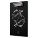 Sternzeichen Fische als weiße Linienzeichnung auf dunkelblauem Kreis.