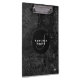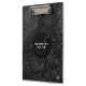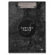 Portapapeles personalizado con su nombre en negro e inicial en gris. Esta tienda y el diseño del producto son HAMbyWhiteGlove alias HAMbWG, en la plataforma Zazzle. El producto básico y la realización son de Zazzle.com. Mostrado en negro, blanco y gris.