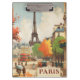 poster de viajes vintage del centro de París con la Torre Eifel al fondo