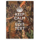 Tu personalizado "Keep Calm" dice sobre una decoración de camuflaje de temporada alta. Un estilo personalizado "Keep Calm" que dice sobre un regalo amable. Humorístico o caprichoso prueba con tus palabras creativas en dos líneas editables de texto. Recuerde usar las letras CAPITAL para obtener los mejores resultados.