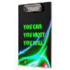 Este portapapeles tiene un dicho motivacional: "Puedes, debes, lo harás".