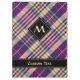 Diseño morado, amarillo dorado y azul tartán. Patrón sin foco. texto personalizado y monograma.