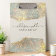 Añada un toque de glamour a su espacio de trabajo con este portapapeles holográfico purpurina, con un elegante tipo de letra de guión para una moda y un aspecto personalizado. Ideal para profesionales de la belleza, el cabello o el bienestar, este portapapeles personalizado ofrece estilo y funcionalidad. Perfecto para la organización con estilo, es un accesorio elegante que añade un toque moderno y lujoso a cualquier entorno.