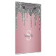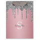 Disfrute de este elegante diseño con su nombre y monograma o inicial con moda y purpurina brillante de plata sobre un fondo de Relieve metalizado rosa dorado rosa.