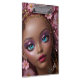 Una muñeca de bonito con maquillaje purpurina y flores rosas. Personaliza con una inicial.