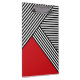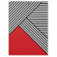 Diseño geométrico abstracto simple con rayas negras y blancas y decoración triangular roja